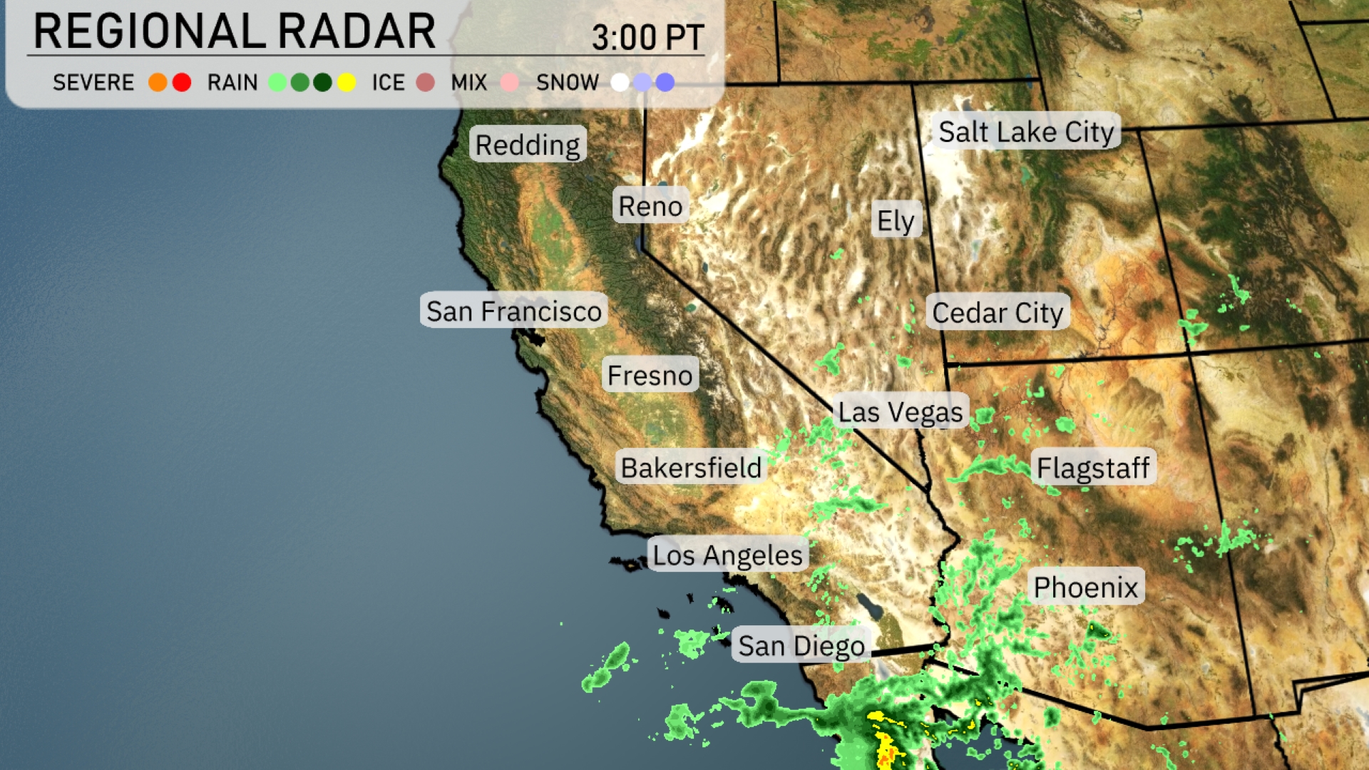 Stay updated with the comprehensive weather insights across Southwest, as Amy Freeze covers everything from the scorching highs in Bakersfield to the imminent showers in San Diego. With expert forecasts and safety tips, be prepared for any weather the week throws your way. A band of showers is sweeping through Southern California, with heavy rain moving northward into the region, impacting areas from San Diego up towards Los Angeles and into the surrounding valleys Ely is seeing some cloudy conditions, with potential for light precipitation. Las Vegas and Cedar City are experiencing clear skies. In Arizona, near Phoenix and Flagstaff, there’s a mix of showers moving through, indicating some wet weather is on the horizon.