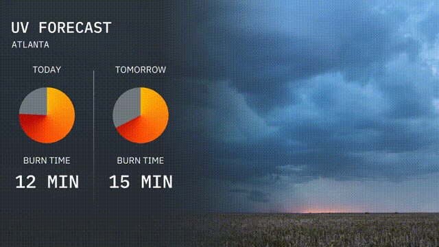 Atlanta is experiencing a high UV index today, with a rating that reduces burn time to just 12 minutes in direct sunlight.