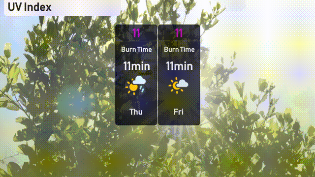The UV index in Atlanta is an extreme 11 on both Thursday and Friday, with a burn time of only 11 minutes. It’s crucial to apply sunscreen, wear protective clothing, and avoid the sun during peak hours to prevent skin damage.
