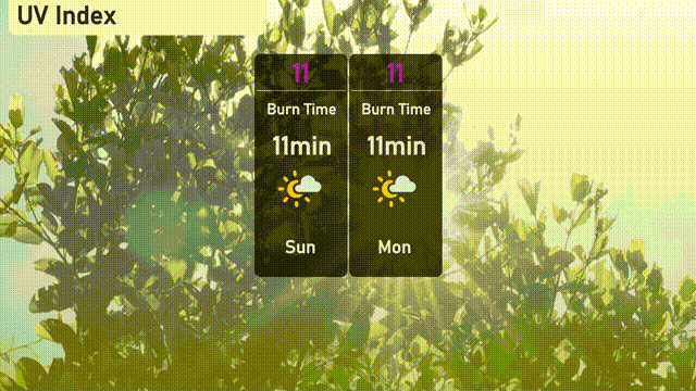 The UV index in Austin is 11 for both Sunday and Monday, reaching an extreme level with a quick burn time of about 11 minutes. It’s important to seek shade during peak hours and wear sunscreen, hats, and sunglasses to protect yourself. Stay hydrated and be mindful of any planned outdoor activities!