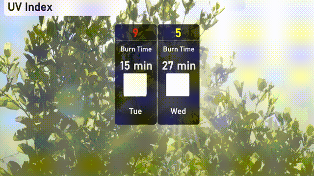 The UV index in Austin is expected to be high at 9 on Tuesday, posing a sun exposure risk with a burn time of about 15 minutes. Models indicate a moderate level of 5 on Wednesday, reducing the burn time to 27 minutes. Remember to wear sunscreen and take breaks in the shade!