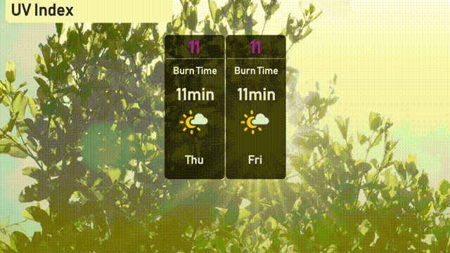 The UV index in Austin for Thursday is 11, indicating an extremely high level with a burn time of just 11 minutes. Similarly, Friday’s UV index also remains at 11.