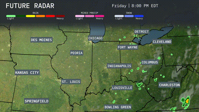 A cold front is expected to sweep through the Midwest tomorrow, bringing scattered thunderstorms and heavy rain primarily to areas like St. Louis, Indianapolis, and Louisville. Expect the possibility of gusty winds and brief downpours, particularly in the late afternoon into the evening. Temperatures will drop post-front, leading to cooler and drier conditions as the weekend approaches. Keep an eye on any severe weather warnings, especially in southern Illinois and Indiana. This weather pattern will usher in a marked temperature decrease by more than five degrees across the region.