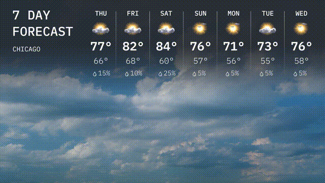 Heading out in Chicago tomorrow? Expect partly cloudy skies with a high of 77°F and a cool evening as lows dip to 66°F. Get more details on what the week holds for Chicago’s weather in our full blog post!