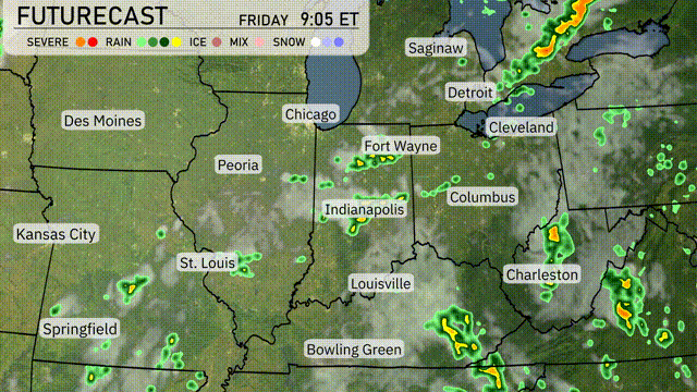 A low-pressure system will drive scattered thunderstorms across the Midwest, affecting cities like Chicago, Fort Wayne, and Indianapolis. Expect these to bring periods of heavy rain and gusty winds, with a chance of severe storms mainly in eastern Indiana and northwest Ohio tomorrow. Temperatures will remain warm in the upper 70s to low 80s. Watch for rapid weather changes as a cold front approaches, leading to cooler conditions by late Thursday. Flash flooding is possible in areas with repeated thunderstorm activity, so stay alert.
