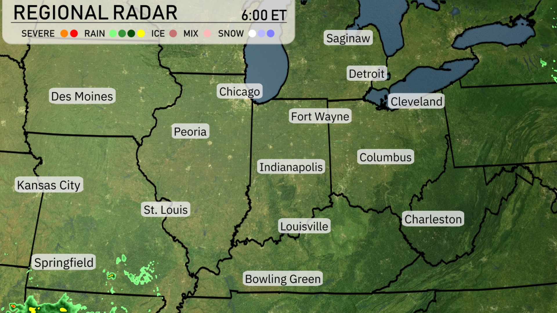 A quiet start over the Midwest region today, with clear skies dominating most areas. However, southern parts near Springfield are seeing some rain showers moving northeast. Skies remain overcast in this vicinity, while the rest of St. Louis and Indianapolis enjoy relatively clear conditions. Farther north, Chicago and Detroit also experience calm weather with no precipitation presently affecting them. For cities like Cleveland and Fort Wayne, it’s all about clear skies and comfortable conditions.