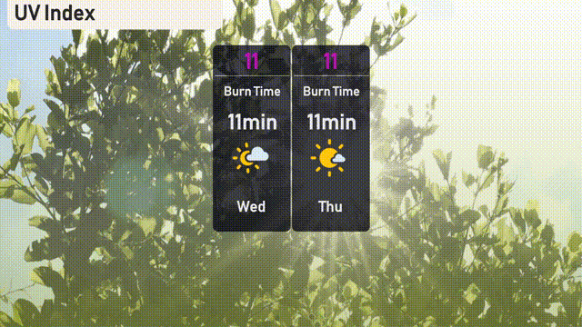 The UV index in Los Angeles for Wednesday is an extreme 11, with a burn time of just 11 minutes, so exercise caution. Protect your skin by applying sunscreen frequently, wearing hats, and seeking shade. Thursday continues the trend with another extreme UV index of 11, maintaining the same quick burn time.