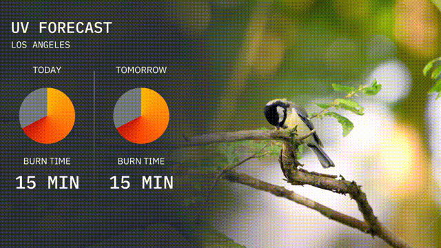 Today in Los Angeles, the UV index is at a high of 8, with a burn time of just 15 minutes in direct sunlight—so sunscreen and shade are your best friends. Tomorrow, expect similar conditions with the UV index remaining high at 7 and the burn time staying at 15 minutes.