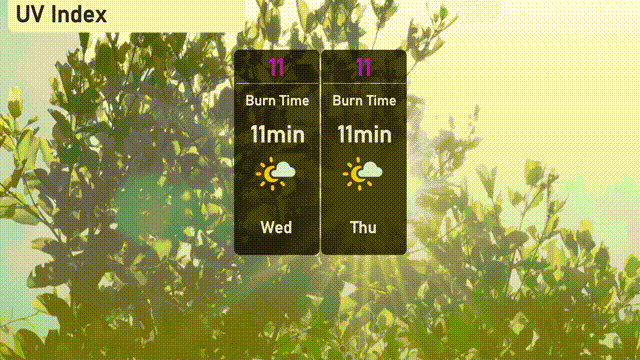 The UV index in Los Angeles is set to be extremely high at 11 on Wednesday, with the sun capable of causing burns in just 11 minutes. By Thursday, the UV index remains at a high of 11, maintaining that quick burn time of 11 minutes. Be sure to apply sunscreen generously and seek shade during peak hours to stay protected!