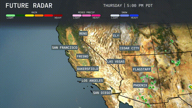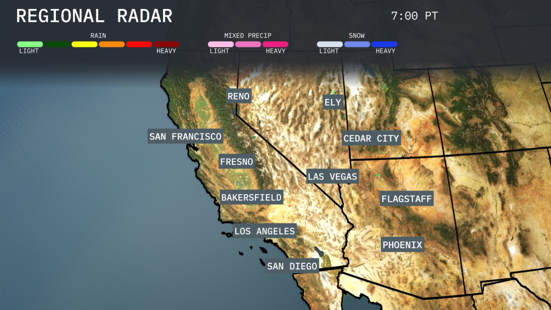 Across the Southwest, scorching hot temperatures dominate under blazing hot sunshine! Fresno and Bakersfield might have a passing cloud. Reno and Ely are hot and dry. In Cedar City, a few clouds are around. Los Angeles and San Diego remain dry, though cloud cover is expected to increase later in the day, with clear skies over Las Vegas and Phoenix.