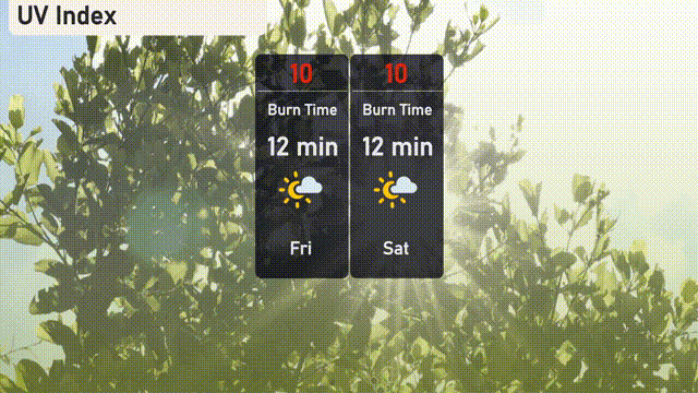 With an extreme UV index of 10 on both Friday and Saturday in Los Angeles, sun exposure risks are high. Expect a burn time of just 12 minutes, so it’s crucial to apply high SPF sunscreen and wear protective clothing if you’re outdoors.