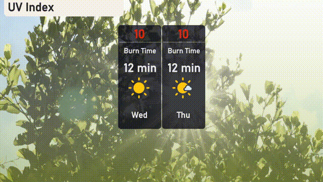 For those enjoying sunny days in Los Angeles, the UV index on Wednesday will reach an extreme level of 10, leading to a rapid burn time of just 12 minutes! By Thursday, it stays at 10, so do take extra precautions with sunscreen and protective clothing to mitigate sun exposure risks.