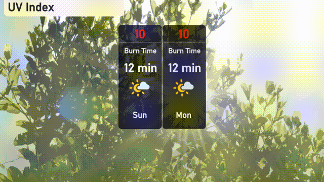 For Los Angeles, the UV index on Sunday and Monday is very high at 10, with a burn time of just 12 minutes in direct sunlight.
