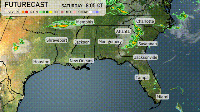 A cold front is expected to push through the Southeast on Sunday, bringing an active weather pattern. Starting from Mississippi and moving eastward, thunderstorms will sweep through Alabama and into Georgia, potentially impacting your Sunday travel plans. Severe weather could bring heavy downpours and gusty winds, particularly affecting areas from Atlanta to Savannah. Coastal regions around Jacksonville may experience on-and-off showers as the system moves through.