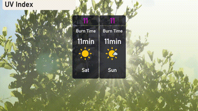 This weekend in Miami, the UV index will be extremely high at 11 on both Saturday and Sunday, with an expected burn time of just 11 minutes.