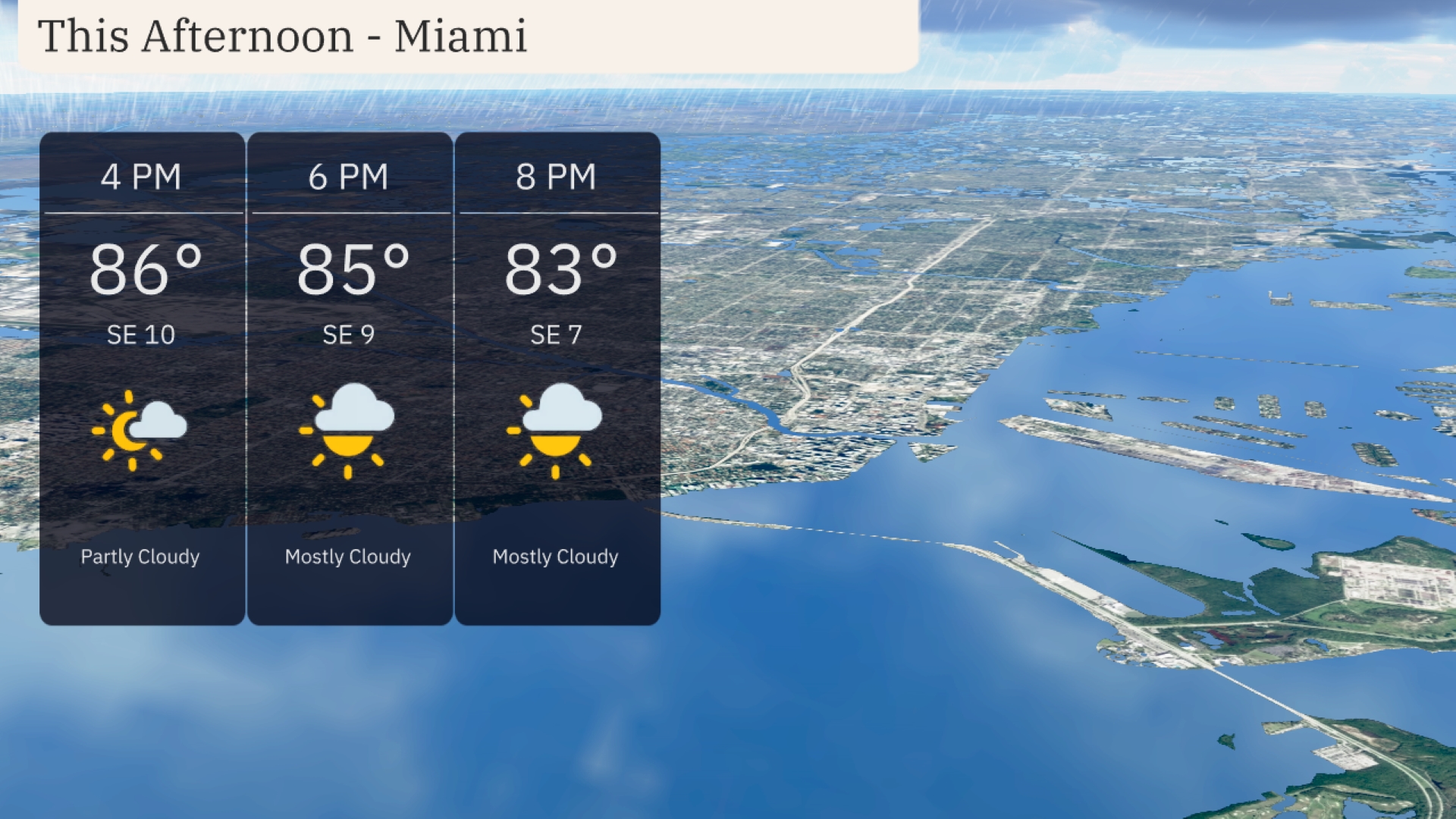 Explore today's weather dynamics across Miami and the Southeast, from warm afternoons to stormy evenings.
