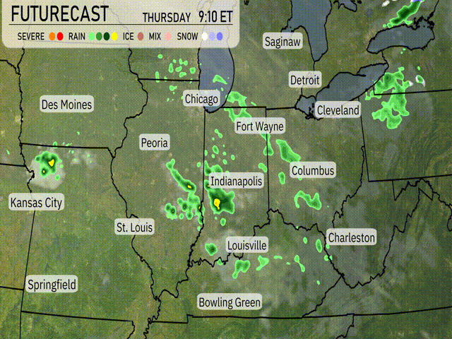 “A cold front is set to move through the Midwest tomorrow, beginning late tonight and progressing into Thursday. Expect scattered thunderstorms primarily in central Indiana, impacting areas like Indianapolis and Fort Wayne. Rain showers will extend from Chicago across to Columbus, potentially disrupting the morning commute. Isolated heavy rain could lead to minor flooding concerns. As the front travels farther east, anticipate a drop in temperatures with cooler yet dry conditions settling in by Friday. ”
