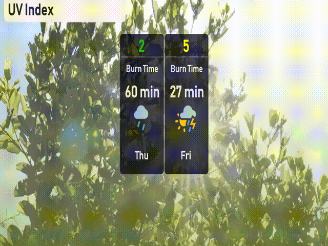 The UV index in Chicago is low today with a rating of 2 due to cloud cover from a storm system, minimizing harmful UV exposure. Tomorrow, the UV index rises to 5 with a burn time of about 27 minutes, so be mindful if you find some sun between clouds. Keep your sun protection handy!