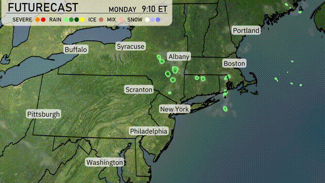 A cold front sweeps through the Northeast, bringing significant rainfall across the area starting tomorrow morning. Strong storms with gusty winds are likely, especially in the afternoon, impacting areas from Albany to Boston. Philadelphia and New York City remain under heavy downpour watches with possible localized flooding. Temperatures drop several degrees behind the front, offering cooler and breezy conditions. Prepare for challenging travel due to reduced visibility and wet roads.