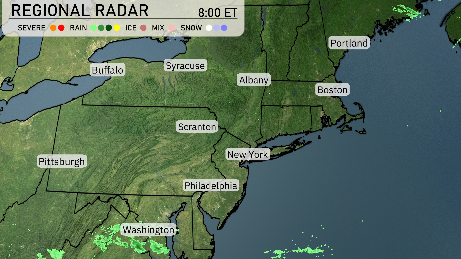 On the Regional Radar, the Northeast is experiencing mostly calm weather. Major cities, including New York, Philadelphia, and Boston, remain dry and cloudy-free for the moment. Areas such as Pittsburgh and Syracuse are not experiencing any significant weather disturbances. Meanwhile, areas near Portland are clear, with no immediate precipitation or cloud cover expected.