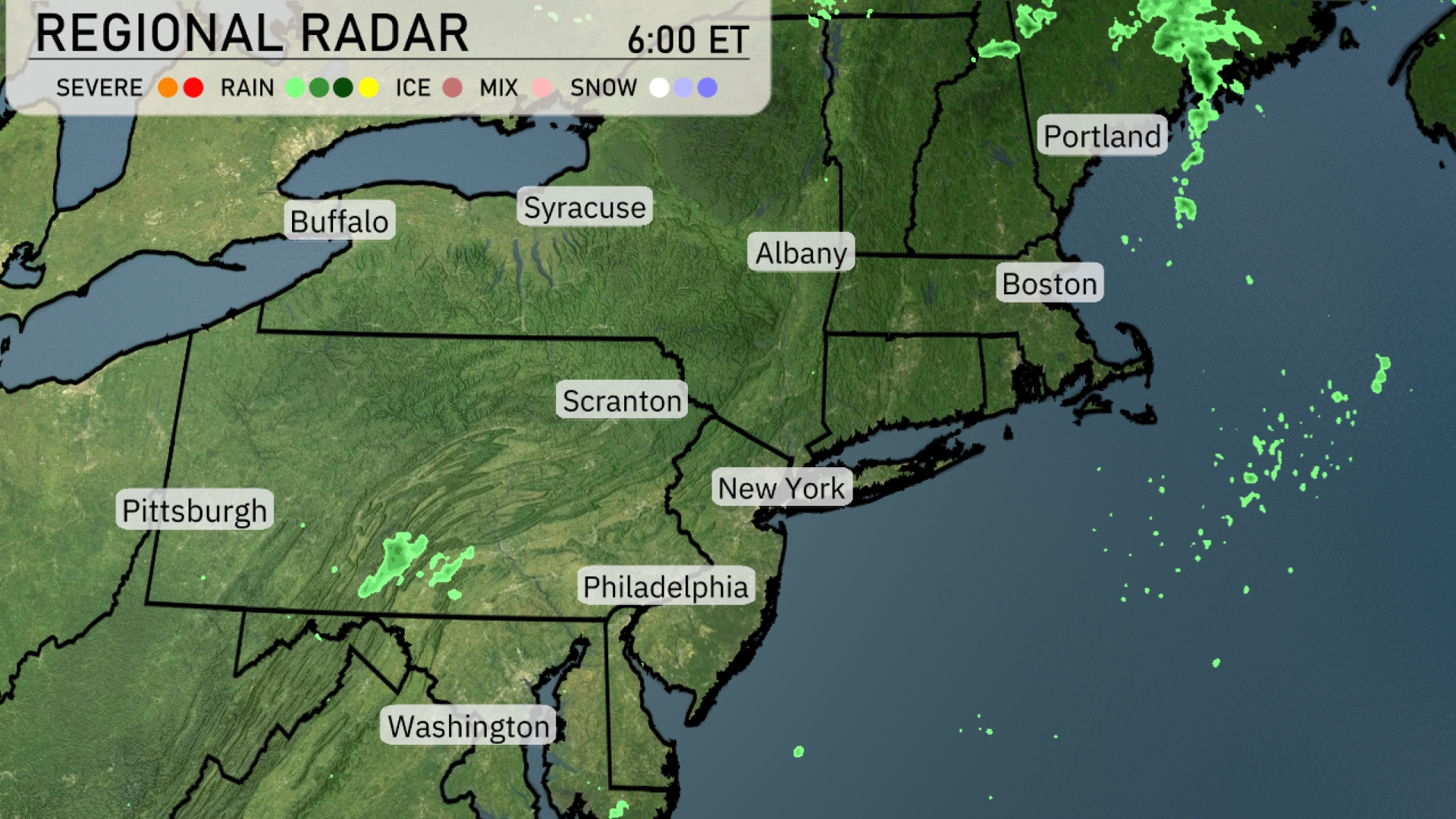 This week in NYC and the Northeast sees a rollercoaster of temperatures and conditions. From highs of 92 degrees in NYC to thunderstorms affecting plans, our detailed guide helps you navigate the erratic yet typical summer weather. Remember, a UV index ranging from high to very high means sunscreen is your best friend! Looking ahead, a cold front on Sunday might bring some needed relief but watch out for those storm warnings! Stay informed and safe with our in-depth analysis and daily updates. Over the Northeast, scattered light rain showers are visible with the most activity over Portland and into upstate New York including Syracuse. A few showers are skirting areas near Pittsburgh as well. The rest of the region, from Boston down to Washington, D.C., appears dry with patchy clouds dominating the sky. Albany and Scranton are experiencing mostly clear conditions, setting the stage for a calm morning.
