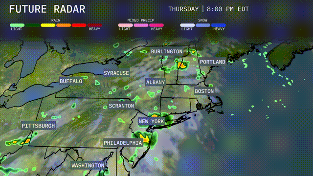 Tomorrow, expect scattered thunderstorms across the Northeast, particularly impacting Burlington and Portland during the afternoon and evening hours. Heavy rain and possible lightning could affect these areas, so stay cautious if you’re planning to be outdoors. Southern New York and Philadelphia should also prepare for light to moderate rain showers throughout the day, marking a shift from today’s dry conditions. Temperatures will remain mild, providing some relief from the recent heatwave.