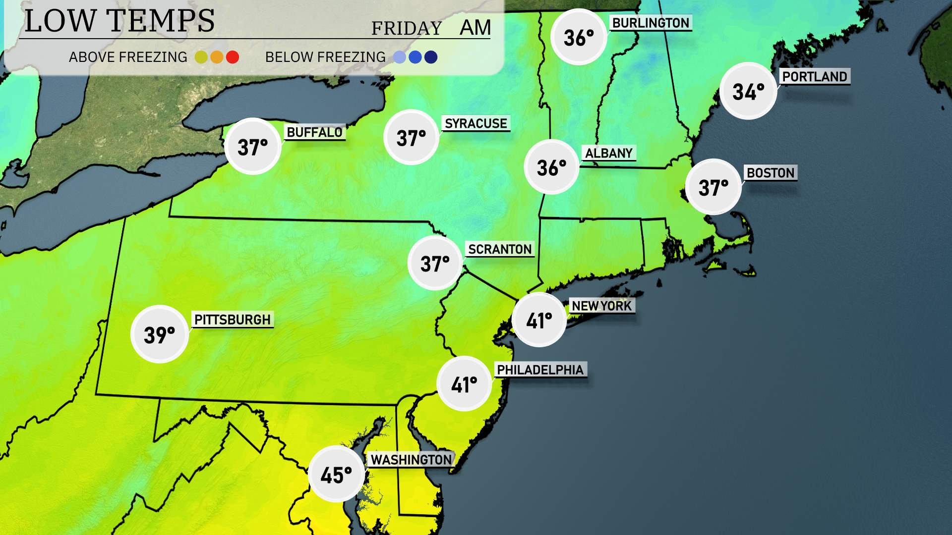 In Boston, expect a high of 46 degrees, while Portland will reach a similar 43 degrees. Philadelphia is forecasted to hit 48 degrees. Farther west, Pittsburgh will see a high of 48 degrees, and Scranton will struggle a bit, only reaching 46 degrees. The capital, Washington D.C., will top out at 52 degrees.
