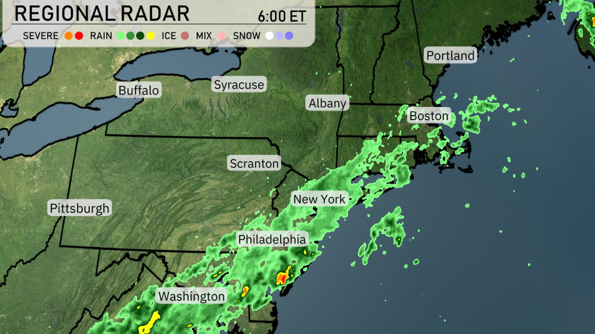 Tonight, temperatures will drop to 58 degrees in Scranton and 59 in Syracuse. Buffalo will see a low of 58 degrees, while New York City remains warmer at 69 degrees. Philadelphia will cool down to 67 degrees, and Boston will settle at 65 degrees.