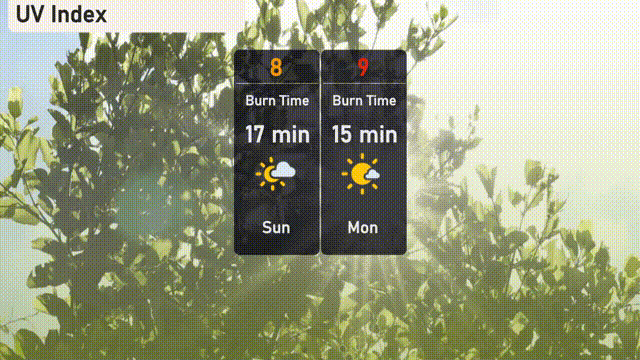 The UV index in New York City is going to reach 8 on Sunday, indicating a high sun exposure risk with a burn time of just 17 minutes. Come Monday, the index climbs to 9, making the sun very strong and reducing burn time to 15 minutes.