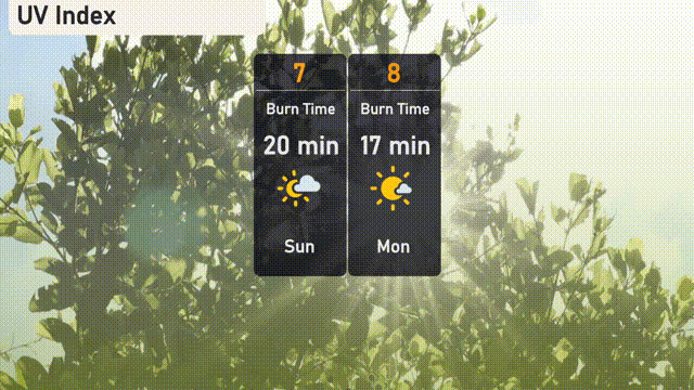 The UV index in New York City is high at 7 today, pointing to a burn time of approximately 20 minutes. As we move into Monday, the UV index nudges up to 8, with a quicker burn time of around 17 minutes.