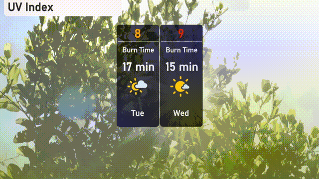 The UV index in Salt Lake City will be very high on Tuesday, reaching an 8, with a burn time of 17 minutes in direct sunlight. Prepare for an even stronger sun on Wednesday, as the index climbs to 9, reducing burn time to just 15 minutes!