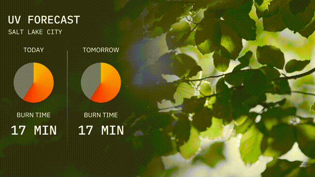 Expect a high UV index of 8 in Salt Lake City today, with potential sunburn in just 17 minutes.