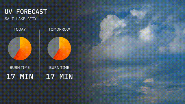 The UV index in Salt Lake City is high today, peaking at 8, with a burn time of just 17 minutes. Tomorrow, you’ll see similar conditions with a UV index of 8, so keep your sun protection gear handy.