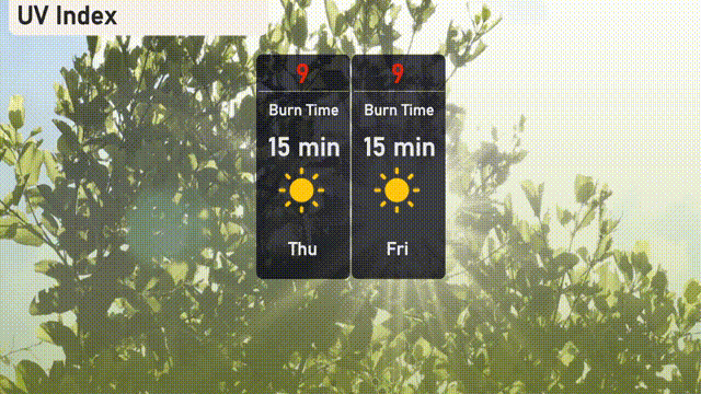 The UV index in Salt Lake City is very high at 9 on Thursday, with a burn time of just 15 minutes in direct sunlight. On Friday, the UV index remains the same, so make sure to apply broad-spectrum sunscreen, wear hats, and seek shade when possible!