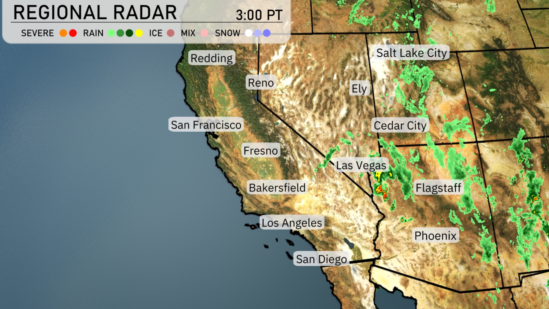 Expect mostly clear skies in the Southwest tomorrow, with temperatures ranging from the mid-70s to low 80s. Southern California might see isolated showers in the early morning hours, potentially causing slick roads. Throughout the day, the weather across Nevada and Arizona will remain dry and warm. By afternoon, the skies clear up over Southern Cali as well.