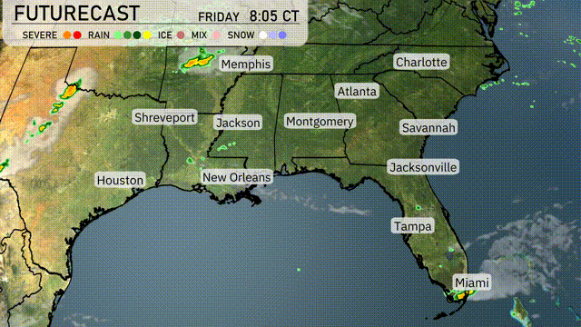 A strong cold front is set to make its way across the Southeast tomorrow, causing widespread impacts from New Orleans to Atlanta. The front will arrive with intense storms, bringing the potential for damaging winds and heavy rainfall, particularly in areas like Montgomery and Birmingham. Significant precipitation may lead to minor flooding, so keep an eye on water levels in low-lying areas through Thursday. Temperatures will drop noticeably behind the front, ushering in cooler and drier conditions by Saturday morning. Prepare for possible severe weather alerts, especially in storm-prone zones.