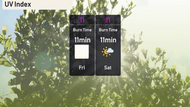The UV index in Miami is extremely high today at 11, which means the sun’s rays can cause damage in just 11 minutes. Tomorrow’s UV index remains at 11, with an equally quick burn time.