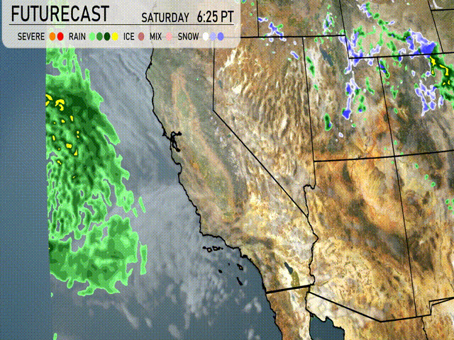 “On the Southwest futurecast, watch for a developing weather system impacting California. A series of systems bring rain across Northern California, transitioning southward with showers reaching the San Bernardino Valley early Saturday. Be prepared for slick road conditions and plan for disruptions. Higher elevations could experience snowfall, bringing challenges to mountain travel. Farther east, expect clearer skies for the desert regions, but keep an eye on changing conditions as systems move through over the weekend.”