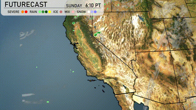 A line of rain showers is sweeping through parts of Northern California, impacting cities like Redding and Reno. Southward, clouds are blanketing the skies over Fresno and Bakersfield, but precipitation is less prominent there. Clear and dry conditions extend across Southern California, including Los Angeles and San Diego. In the desert regions, Las Vegas and Phoenix remain dry while areas near Ely are encountering partly cloudy skies.